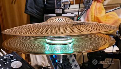 Processore digitale per piatti che controlla il tono dei piatti elettrici acustici (AE). Fa parte del sistema di piatti elettrici acustici Zildjian Gen16, •13" Buffed Bronze HiHats, 18" Buffed Bronze Crash/Ride, completo di cavi e trigher