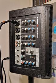 FREEPASS6 è un sistema audio combinato formato da un diffusore, un amplificatore ed un mixer da 5 canali in un formato ultra compatto e portatile. Il diffusore a due vie utilizza un tweeter al neodimio da 1" ed un woofer da 6.5", in grado di fornire una risposta in frequenza estesa e dettagliata. L'amplificatore incorporato eroga agli altoparlanti 75 W di potenza RMS e, grazie ad un connettore Power Out, è in grado di alimentare anche un secondo diff usore.Il sistema include un mixer a 5 canali di elevata qualità, con EQ di canale a 2 bande, EQ per il Main Mix a 3 bande, uscita Monitor e un sofisticato Effetto Digitale a 16 presets.FREEPASS6 è alloggiato in un cabinet in MDF robusto e compatto, rifinito con una resistente vernice antigraffio, che assicura la massima portabilità e protezione per ogni tipo di utilizzo.