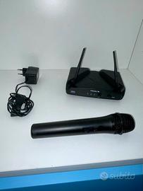 Il PROEL WM202 è un radiomicrofono a mano a frequenza fissa con risposta in frequenza 50 Hz - 15 KHz e distanza operativa massima fino a 30 metri.