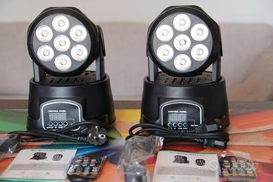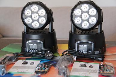 quattro teste mobili nuove con scatola attivabile con quattro telecomandi oppure con microfono incorporati per fare feste con effetti automatici attivabile anche con DMX 512 Ottimo per feste di compleanni matrimoni comunioni feste di 18 anni discoteca animazione animatore DJ Club party bar negozi