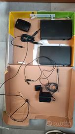 due radio microfoni uno ad archetto uno a molletta da vestiti, con due basi ricevitore