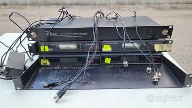 Vendo Set Radiomicrofoni Sennheiser EW 100 G1 Usati formato da: - 4 Trasmettitori Bodypack e 4 Ricevitori Sennheiser : 150€ l’uno - 1 Antenna Splitter T-bone (alimentazioni dei 4 sistemi e antenna) : 100€ - 4 Archetti color carne direzionali Proel HCM10v2 : 10€ l’uno Range Frequenze 630.00 662.00 Mhz Segni di usura, ma tutto funzionante.