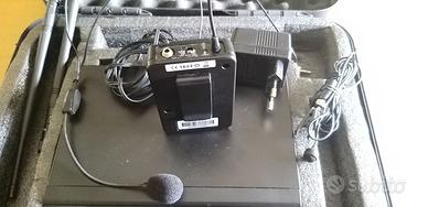 Per cambio progetto vendo questo radio microfono ad archetto perfettamente funzionante completo di microfono ad archetto e a bavero il tutto molto comodo per vari usi come riunioni, oppure per scuola, in palestra e altri eventi dove servono le mani libere, articolo di marca e non cinesata.