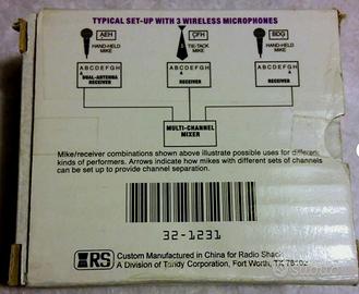 NUOVO - Microfono a clip wireless professionale multicanale RADIOSHACK 320-1231A FORNITO IN SET COMPLETO, CON MANUALE ORIGINALE E SCATOLA PRODOTTO DA TANDY CORP. 1997 PER L'USO CON RICEVITORE WIRELESS MULTICANALE DA 170 MHZ.