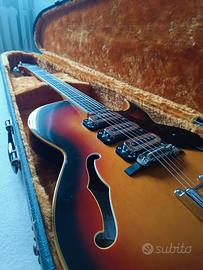 Rara Eko Dragon 60s vintage originale Recanati. Iconico. Guarda altre chitarre o bassi cliccando sul mio nome Eko Dragon di bellezza Rara in condizioni impeccabili con più di 60 anni di vita con la sua custodia del tempo. Tutto originale. una chitarra semi-acustica introvabile, un vero gioiello del made in Italy. Prodotta in edizione limitata negli anni '60, questa chitarra è diventata un oggetto di culto per i collezionisti e musicisti in cerca di un suono distintivo e un'estetica inimitabile. Caratteristiche principali: Corpo semi-hollow con design asimmetrico unico 3 pickup per una versatilità sonora eccezionale: dal jazz al rock, passando per blues e pop Leva del vibrato per espressioni dinamiche e vibranti Finitura sunburst vintage che richiama lo stile classico dell'epoca Dettagli intarsiati sul manico, che aggiungono eleganza e personalità Questa Eko Dragon non è solo uno strumento, ma un pezzo di storia musicale. Perfetta per chi vuole distinguersi con uno strumento rarissimo e ricco di carattere. Non lasciarti sfuggire questa occasione: un'opportunità irripetibile per possedere una chitarra leggendaria! Custodia Originale ancora in perfetto stato 3700