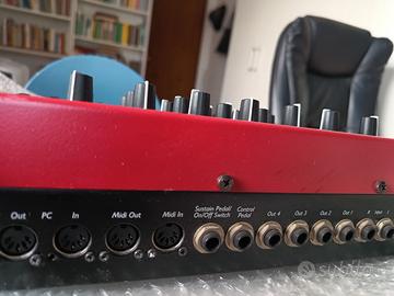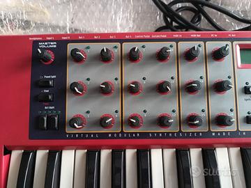 Oscillator A with Sine, Triangle, Saw and Square/Pulse waveforms. Frequency range 8.18Hz-12.54kHz.Finetune. Continuously keyboard tracking. Two pitch modulation inputs, one FM modulation input, one Sync input and one Pulse-width modulation input : 11%