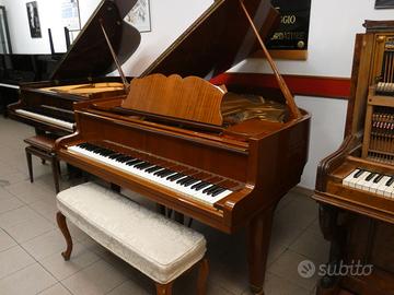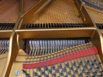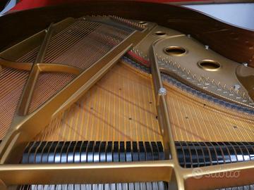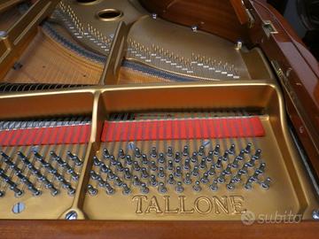 Questo esemplare è un mezza coda di 180 cm. fabbricato nel 1968/69 e sempre rimasto in casa privata dove Il sig. Tallone veniva ad eseguire le accordature.La finitura è in un bellissimo mogano di tonalità molto calda mentre la cura maniacale del dettaglio che Tallone profondeva nei suoi pianoforti si nota in ogni particolare come nella fusione della ghisa o nella linea del leggio.Naturalmente la tastiera è in avorio mentre la meccanica è una Schwander di Parigi.Dallo spessore dei martelletti si nota come in questi cinquant'anni sia stato suonato davvero poco,tanto che è stata sufficiente un'accurata registrazione della meccanica ed una attenta intonazione della martelliera per riportarlo al suo suono originale. Si nota inoltre la cura con la quale è stato tenuto dal suo proprietario non presentando righe od ammaccature ma apparendo perfettamente lindo come se fossa ancora nuovo.