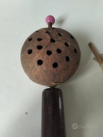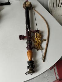 in noce di cocco e legno, corde in crine di cavallo. Corredato di archetto in legno e crine. Presenta segni del tempo