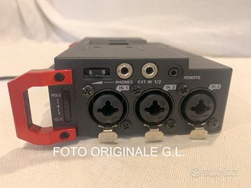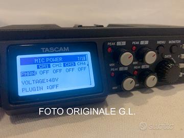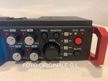 Vendo perfettamente funzionante e condizioni pari al nuovo registratore multitraccia Tascam completo di alimentatore esterno a corrente e scheda SD da 32GB. Elenco alcune caratteristiche: Timecode SMPTE può essere immesso tramite il connettore TC IN per aggiungere ai file l'orario di inizio di registrazione, funzione molto importante quando si registra con camere Broadcast - Registrazione simultanea di 6 tracce, Modalità di registrazione Mono, Stereo, 2 MIX, DUAL MONO, DUAL ST e DUAL2MIX, Formati di registrazione: 16/24-bit, 44.1/48/96/ 192kHz (WAV / BWF) (192 kHz solo registrazione a due tracce), - Preamplificatori microfonici originali TASCAM HDDA forniscono una alta qualità audio, Livelli d'ingresso regolabili separatamente per ogni traccia, Ingressi XLR / TRS supportano livello di linea +4dBu e alimentazione Phantom a 24/48V, Clock e Start/Stop registrazione possono essere sincronizzati con una telecamera utilizzando la porta HDMI - Filtro passa bassoPlug-in power mic e microfoni ad uscita elevata (EXT IN 1/2) supportati - 2 uscite separate di alta qualità di cui una per cuffie con uscita massima 50mW + 50mW - Mixer integrato permette le regolazioni pan e level e il monitoraggio e può produrre un mix di 4 canali - Alimentazione phantom attivabile a 24v o 48v sugli ingressi XLR - Filtro Passa-basso selezionabile, 50, 80, 120, 180, 220 (hz) - Può essere alimentato a batterie da 1,5v o con powerbank o con alimentatore esterno a 220v. Fornisco manuale di istruzioni in italiano. Purtroppo non dispongo piu’ della scatola originale e della piastra per agganciare una reflex, smarrite dopo un trasloco.