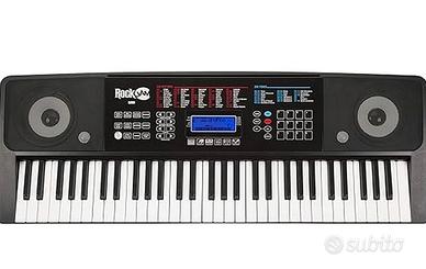 Pianoforte RockJam con tastiera a 61 tasti, display touch con 200 ritmi, 200 suoni e 30 brani, cuffie con filo, supporto per tastiera, che può essere regolato, sedile imbottito ripiegabile, pedale.
