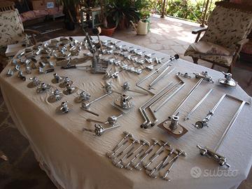 foto uno collari originali acciaio cromato anni 60 100 euro per uno,foto due ottime repliche USA 50 euro per uno ,anni 70 a 60 euro per uno , disponibili tante cose ricambi originali sesta foto asta portapiatto anni 60 braccetto porta ton lungo circa 20 cm in coppia 400 euro blocchetti varie epoche tiranti con grappa e tanto altro non in foto alcuni decenti altri ottimi ,che sono disponibili a un giusto prezzo considerato che è tutta merce di oltre 50 anni e che proviene dagli USA quindi non sono in regalo ,chiedere per disponibilità