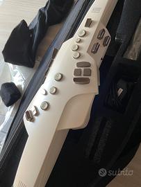 Roland Aerophone Ae-10 ~ USATO perfetto Usato pochissimo e in ottime condizioni Con tutti i suoi accessori - Alimentatore - collare - custodia - sacchetto - polsino - documenti vari + istruzioni - scatola marchiata Roland e busta protettiva. ‼️Consegna a mano nella zona di Cagliari AEROFONO DIGITALE CON DITEGGIATURA DA SASSOFONO In studio e sul palco, il vostro fidato sax acustico è sempre al tuo fianco. Ma se lavori su molti generi musicali, immagina quanto potrebbe essere utile disporre di un singolo strumento a fiato che offre tutte le timbriche necessarie. Il Roland Aerophone AE-10 è un innovativo strumento a fiato digitale che unisce la tradizionale diteggiatura del sax con la flessibilità di tutte le timbriche interne che servono. I musicisti esperti si sentiranno immediatamente a casa grazie al familiare sistema di diteggiatura del sassofono, ai suoni SuperNATURAL dalla risposta immediata, e al sensore del fiato che reagisce come il vostro strumento acustico preferito. La grande scelta di suoni ricrea fedelmente tutti i modelli di saxofono dal soprano al baritono, insieme a strumenti a fiato come il clarinetto e la tromba, strumenti ad arco, e persino sintetizzatori. Grazie agli altoparlanti incorporati, all'alimentazione a batteria e alla connettività alle DAW, il Roland Aerophone AE-10 è una scelta versatile, che ti accompagna ovunque e ti supporta in ogni scenario musicale.