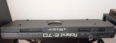 Vendo Roland e-70 con le casse lavorano benissimo su suoni bassi-medi-alti-altissimi, ma sui bassimi "gracchiano" , molto probabilmente i coni degli altoparlanti interni si sono seccati o danneggiati (un problema comunissimo per una tastiera che ha più di 30 anni). Non la vendo perché non funzionante ma per mancanza di spazio in casa. In dotazione supporto in metallo e custodia rigida.