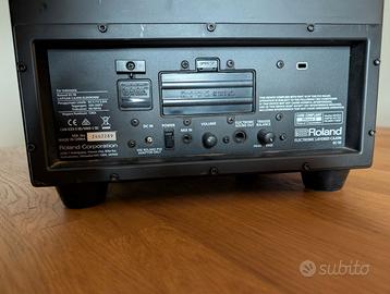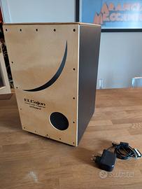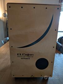 Roland EC-10 EL Cajon acquistato usato, ma in perfette condizioni, solo alcuni segni di usura e per utilizzo, ma perfettamente funzionante, completo di alimentatore originale. Modulo sonoro integrato con 50 kit preconfigurati, 2 sensori per distinguere i colpi centrali da quelli sui bordi, cordiera integrata, fino a 12 ore di autonomia con 6 batterie AA, ma funziona anche tramite alimentatore. Ingresso stereo jack da 3,5 mm per collegare lettori MP3 o CD e ingresso stereo jack da 6,5 mm per collegare diffusori o console mixer