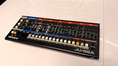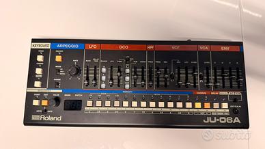 Roland JU-06A: sintetizzatore digitale linea Boutique. Vendo Roland JU-06A, synth polifonico digitale della serie Boutique Ottimo per elettronica, house, techno e suoni classici delle sue emulazioni di Juno, Jupiter e altri timbri iconici. Caratteristiche principali Sonorità ricche e stateful: waveform digitali con ingegneria Rolanda autentica 4 note di polyphony (4-voice) con suoni ready-to-play Small footprint, USB and MIDI per integrazione facile con DAW e setup live Aree di programmazione intuitive: ynth engine ispirato a JU-60/JC-120 style Effetti integrati: chorus, delay e altre modulazioni Alimentazione via USB o alimentatore opzionale Build compatto: perfetto per studio, live rig o viaggio Suoni classici a portata di mano senza pesante setup Ideale per producers, live performer e appassionati di suoni vintage-moderni Prezzo competitivo rispetto a synth analogici originali, con gestione moderna del sound design Condizioni Usato/come nuovo Include: cavo alimentazione Disponibile per prova in zona Bologna