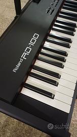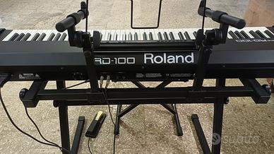 Vendo Roland rd-100, senza nemmeno un graffio e perfettamente funzionante. Aggiungo sostegno a Z per doppia tastiera, regolabile in altezza, sgabellino Proel e pedale sustain originale Roland. Custodia rigida e copertura in pelle.