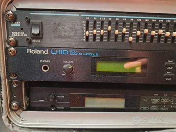 Roland U110 + Korg M3R + DOD R431 Alla struttura di fissaggio manca una rondella (difetto visibile nelle immagini) e l'M3R non resta in posizione.