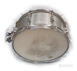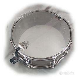 Rullante “TM 14x6X” prodotto da un artigiano veneto . dalle seguenti caratteristiche. •DEFINIZIONE della categoria degli “heavy shell” (fusto pesante) •FUSTO in inox 2,5 mm lasciato volutamente grezzo •PELLE superiore REMO Ambassador Batter •PELLE risonante REMO Ambassador Snare •8 tiranti •CORDIERA Tama, CARATTERISTICHE SONORE •SUONO potente con attacco netto •NOTE più alte •VOLUME maggiore •VIBRAZIONI assenti •SUSTAIN Basso TIPO DI MUSICA •Rock pesante e metal OPZIONI: a scelta lo possono rifinire sia lucidato, che spazzolato oppure placcato oro, rame, ottone.