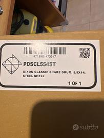 Vendo rullante batteria acustica Dixon Classic modello PDSCL554ST, misura 14” x 5,5”, fusto in acciaio, in condizioni eccellenti.