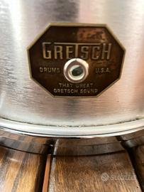 Rullante Grestch in alluminio 14 x5 anni ‘70 , 8 tiranti cerchi die cast … presenta qualche setno di usura dovuto agli anni … suino potente e grande attaco …macchinetta tendicorsiera non originale …buono stato …