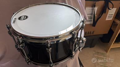 Dimensioni: 14" x 07" Serie Starphonic Scocca spessa 6 mm composta da 6 strati di noce nera americana e 1 strato esterno di radica di noce nera Cerchio scanalato a 10 fori Filtro per rullante a trasmissione lineare MLS50A/MLS50B errato acquisto /progetto fallito ancora chiuso nella sua scatola - garanzia negozio - provato una volta con custodia tama powerpad