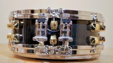 Modello: MSD 14 DWSeriale: n°1796Paese di Produzione: Made in JapanFusto: 7 strati di aceroBordi: taglio con inclinazione di 35° Finitura: Charcoal Glossy Natural Veneer Throw-off: Double G style Yamaha micro sensitive butt plateTiranti: n°16 Yamaha gold custom lugs Cerchi: 3 mm Aluminium Yamaha power hoopsPelli: Remo Ambassador batter // Remo snare side Cordiera: 2x14” 12 strand wires 1 original 1 puresound Il rullante viene venduto nelle condizioni documentate dalle foto che sono parte integrante della descrizione, secondo la formula del visto e piaciuto.
