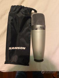 Marca: Samson • Modello: C03U • Tipologia: Microfono a condensatore da studio con uscita USB. • Caratteristica Principale: Multi-pattern (puoi cambiare il modo in cui "ascolta" i suoni). Caratteristiche Tecniche Il C03U non è il classico microfono USB economico; ha diverse funzioni integrate direttamente sul corpo del dispositivo: • Diagrammi Polari Selezionabili: 1. Supercardioide: Ideale per la voce singola (riduce i rumori laterali). 2. Omnidirezionale: Cattura il suono a 360° (utile per tavole rotonde). 3. Figura a 8: Cattura il suono davanti e dietro (perfetto per interviste faccia a faccia). • Filtro Passa-Alto (High-Pass): Uno switch per tagliare le frequenze basse (come il ronzio dei condizionatori o il rumore del traffico). • Pad da -10dB: Uno switch per attenuare il segnale se stai registrando sorgenti molto rumorose (come una batteria o un amplificatore per chitarra). • Plug & Play: Non necessita di alimentazione esterna (Phantom Power) o schede audio; si collega direttamente al PC/Mac tramite il cavo USB di tipo B (quello squadrato, tipico delle stampanti) incluso nelle foto CD all interno