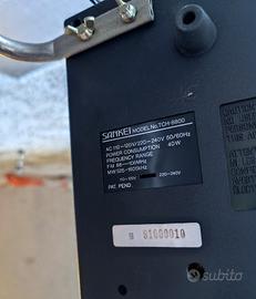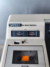 Rarissimo sistema combo Sankei TCH-8800 "The Music Machine", prodotto in Giappone nel 1978. Un pezzo iconico di design Space Age e tecnologia vintage, estremamente difficile da reperire in queste condizioni e con tutta la dotazione originale. L'oggetto è completamente funzionante in ogni sua sezione: Organo elettronico: 37 tasti perfettamente operativi. Analog Drum Machine: Ritmi vintage selezionabili e combinabili. Registratore/Lettore Cassette: Meccanica testata e funzionante. Radio 3 bande: FM/MW/LW con ricezione nitida e antenna integra. Il set include gli accessori originali (introvabili): Stand metallico originale Sankei. Coppia di casse acustiche coordinate. Leggio originale. Ideale per collezionisti di modernariato, amanti del lo-fi o per chi cerca un pezzo d'arredo unico e funzionale. Segni estetici minimi dovuti al tempo, plastiche in ottimo stato senza crepe.