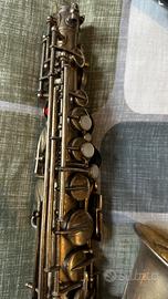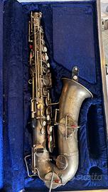 Vendo come da titolo uno splendido esemplare di Buescher True Tone Artist gold plated del 1923. La tamponatura è ancora buona. È stata rifatta nuova meno di 5 anni fa. Lo strumento suona su tutto il registro senza alcuna difficoltà con un intonazione incredibile, mi permetto di scrivere superiore. Vedasi quartetto Rascher per farsi un idea di quello che possono ancora dire questi strumenti. Matricola 132XXX Si vende con imboccatura Selmer C* e custodia Rigida. La finitura Gold e le splendide incisione lo rendono meraviglioso dal punto di vista estetico. Se si facesse lucidare sarebbe intatto all’80%. Qualsiasi prova zona Torino. Spese di spedizione a carico dell’acquirente. Prezzo trattabile se seriamente interessati. No permute, grazie.