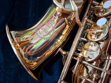 Sassofono Contralto Grassi. Ottime condizioni. Presenta tutti i suoi accessori originali: -bocchino -3 porta lance -tracolla -panno per pulizia -grasso -spolverino interno Custodia a spalla/mano con cerniera. Prezzo trattabile (pagato €380,00)