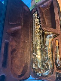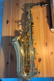 Bellissimo sassofono contralto Eastrock, color oro, con una incisione originale a mano floreale. Usato per pochissimo, si presenta come nuovo. Includo vari accessori, tra cui una spazzola per la pulizia interna e un panno per quella esterna, 8 cuscinetti per boccaio e laccio per suonare comodamente il sax. Vendo nella sua custodia rigida originale, pratica e comoda per il trasporto e la conservazione.