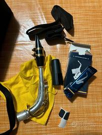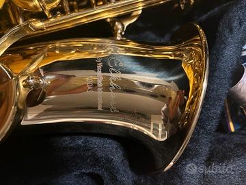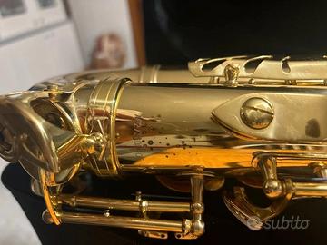 Lo strumento è in ottime condizioni estetiche e funzionali, perfetto per chi cerca affidabilità e un suono pronto. • Marca/Modello: Elkhart 100AS. • Numero di Serie: AK27310040 (inciso sul retro dello strumento). • Finitura: Bellissima laccatura oro con chiver (collo) argentato. Cosa include il pacchetto: • Custodia Rigida Originale: Interno sagomato in velluto nero per la massima protezione. • Set Imboccatura Completo: Bocchino originale, legatura dorata e copribocchino nero. • Ance Vandoren Paris (Misura 2½): Incluse ance sigillate del modello più prestigioso sul mercato. • Accessori Extra: Tracolla regolabile, salvabocchini adesivi (nuovi) per il comfort dei denti e grasso per sugheri per il montaggio fluido del collo. • Manutenzione: Panno giallo per la pulizia quotidiana incluso. Presenta solo lievi e naturali segni del tempo sulla laccatura vicino al numero di serie, che non compromettono in alcun modo l'integrità del metallo o la qualità del suono.