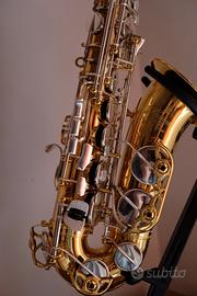 Sax contralto professionale customizzato da uno dei migliori riparatori Italiani per farne un oggetto unico e prezioso.
