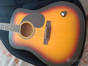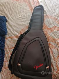 vendo chitarra acustica, usata se va bene 10 volte, pagata 170 1 anno fa, la cedo a 130 trattabili con gadget come custodia fender corda per collo, porta pennini e pennini