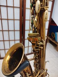 Vendo bellissimo Sax Buescher Aristocrat serie 2 del 1942, perfettamente funzionante,nessuna ammaccatura, intonazione perfetta su tutta l'estensione, revisionato e ritamponato da poco più di un anno, come da libretto dal laboratorio musicale Pezzolla di Mesagne. Sul libretto tutti i lavori eseguiti. Il sax è pronto a suonare. Le meccaniche sono perfette, tasti perfetti veloci ed ergonomici.