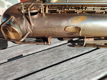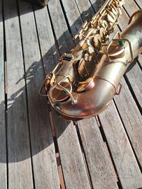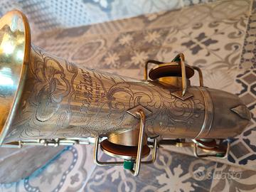 Splendido Sassofono Vintage Buescher placcato oro, una rarità per gli strumenti del 1914 (quasi tutti argentati), valore collezionistico 2500 se in perfette condizioni. Bellissimo suono, non ha bisogno di interventi, pronto a suonare... Scambio con Sax Tenore o Alto Yamaha