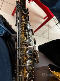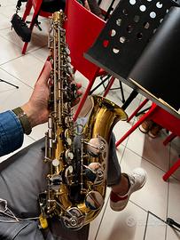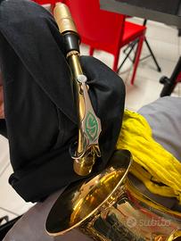 Perfetto, ritamponato, pronto per suonare. Modello anni 90, made in Italy (non come i nuovi grassi), sonorita’ calda paragonabile a Selmer. Particolarita’ : il chiver smaltato smeraldo.