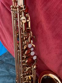 Splendido sax contralto in perfette condizioni, nessun sgraffio o ammaccatura, usato pochissimo. Costruito sul modello Selmer SAII, corpo robusto, finitura ramata, intonazione perfetta. Lo vendo perché ho due strumenti ed ho deciso di sacrificarne uno. Il prezzo è leggermente trattabile.