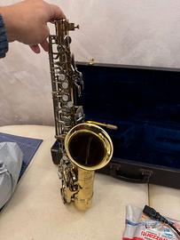 Il sassofono si prensenta in buono stato generale. I tamponi sono in buone condizioni. Ha qualche imperfezione estetica che può essere sistemata facilmente ma che non inficia il suono dello strumento. Si tratta di perfezionismi. Le chiavi chiudono bene e lo strumento suona tutti i registri anche se è fermo da alcuni anni.