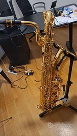 Sax baritono Karl Glaser nuovo discendente con custodia semirigida, collarino e imboccatura. Completamente revisionato da un maestro riparatore di Roma perché quando è arrivato non chiudeva bene. 1700 euro