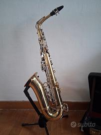Sax contralto Grassi anni 70, standart, cuscinetti interamente rifatti 6 mesi fa, ( da un noto riparatore romano) suona bene anche nelle note basse, timbro scuro, sax vero che ha suonato molto ma SEMPRE tenuto bene. NESSUN LAVORO DA FARE. Insieme al sax regalo custidia e 2 bocchini (Raganato e Selmer ). Vendo a malincuore, ma tenerlo fermo è peggio. Spedisco anche, ma preferisco ritiro a mano così provate il sax.
