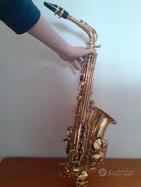 Nella custodia, oltre al sax, allego anche delle ance nuove di zecca mai utilizzate, una tracolla e degli stracci fatti apposta per pulire lo strumento.