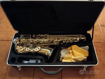 Sassofono contralto usato 3 volte, praticamente nuovo! Condizioni più che ottimali, munito di spolverino per pulizia, valigetta compresa e qualche ancia. Prezzo trattabile.