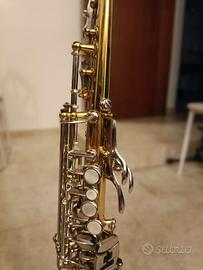 Vendo sax soprano Borgani degli anni '90, dorato con chiavi argentate, campana incisa con motivo floreale, fabbricazione e meccanica tutta italiana, ottimamente tenuto (presenta qualche minuscolo segno dato dall'uso), recentemente revisionato in ogni sua parte.