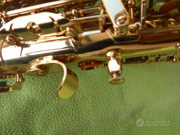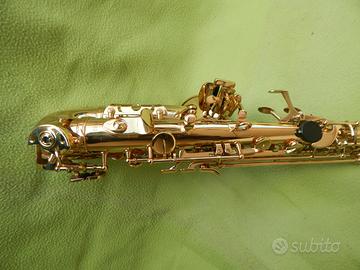 Vendo sax soprano curvo marca Maxtone pari al nuovo, acquistato per mio figlio ma poi ha scelto di imparare la batteria, laccatura perfetta, immacolato , tamponatura e meccanica funzionale e bella custodia rigida in fibra con serratura ed una chiave, nuova imbragatura della BG mai tolta dall'imballo originale, imboccatura fascetta e copriimboccatura.