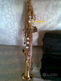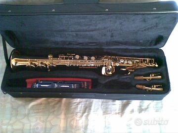 Vendo sax soprano a 200 euro, il sax funziona benisiimo, è intatto, è intonato, non ha ammaccature, 2 cliver, becco Yamaha 4c, collarino e 5 ance Vandoren da 2,5, la meccanica funziona egregiamente, ha solo 1 copri - tasto scheggiato.
