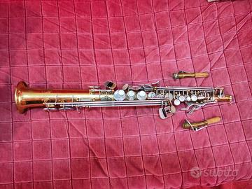 Vendo sax soprano Selmer Paris S.A. 80 serie III in ottime condizioni, perfettamente funzionante e pronto all'uso. Fusto dorato, chiavi argentate. Doppio chiver. Il sax suona benissimo su tutti i registri. Alcuni tamponi usurati sono stati sostituiti con tamponi Selmer. Il resto dei tamponi sono in buono stato. Lo strumento è stato revisionato sempre e solo da Roberto Balassone. Inclusa nel prezzo custodia originale Selmer.