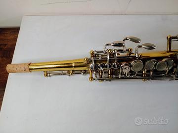 Sassofono Soprano anni 60/70, suona molto bene, lo strumento non ha marchio, logo e matricola.