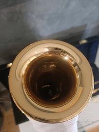 Sono presenti lievi segni d'uso sulla campana e vicino al logo "YAMAHA" sul corpo dello strumento. Inoltre, è presente una piccolissima ammaccatura molto superficiale sulla campana, visibile solo osservando con molta attenzione da circa 5cm si distanza.