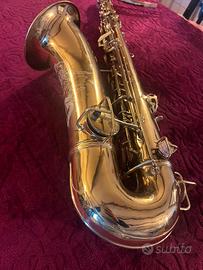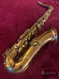 Sax tenore Conn New Wonder 1 del 1921 con rolled tone hole, il sax è stato rimesso a nuovo, cambiati tutti i cuscinetti, sugheri e feltri, ripassata l’incisione che si vedeva poco, applicata una piastrina piu ergonomica sulla chiave del sol#(l’originale rimane sotto ed è ripristinabile se si vuole). Sostitita con altra costruita artigianalmente la chiave del re#(foto 6), la nuova è più ergonomica con terminale a goccia a differenza dell’originale denominata cucchiaino da zucchero (che però conservo e fornisco). Applicata piastrina alla chiave del mib per avvicinare la posizione del mignolo dx all’ anulare altrimenti troppo lontana.
